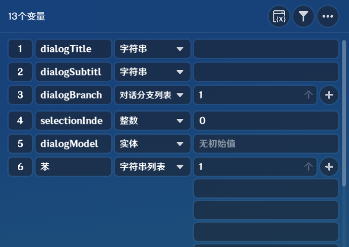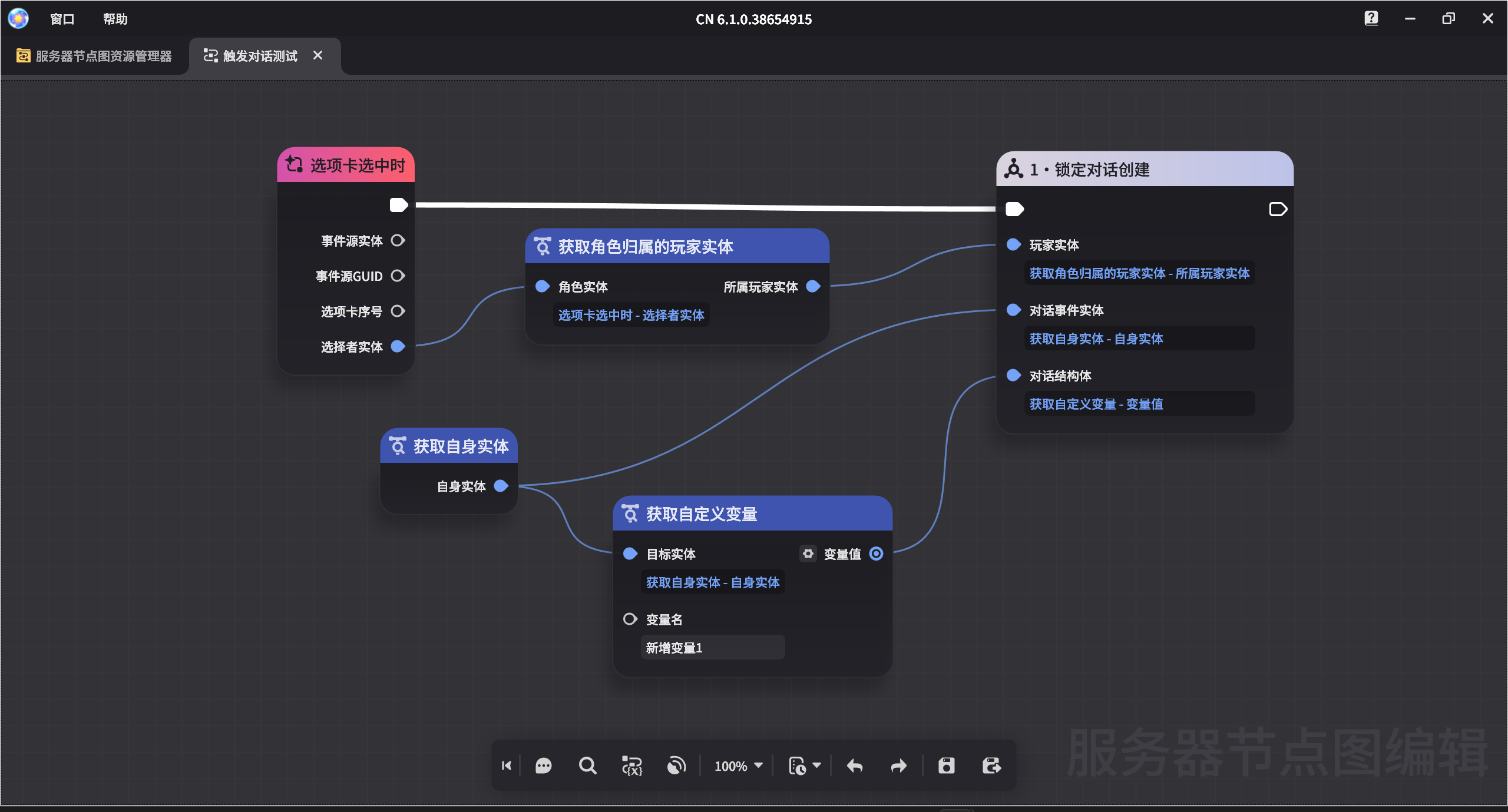 - 在结构体变量编辑界面中新增一个「对话节点」。