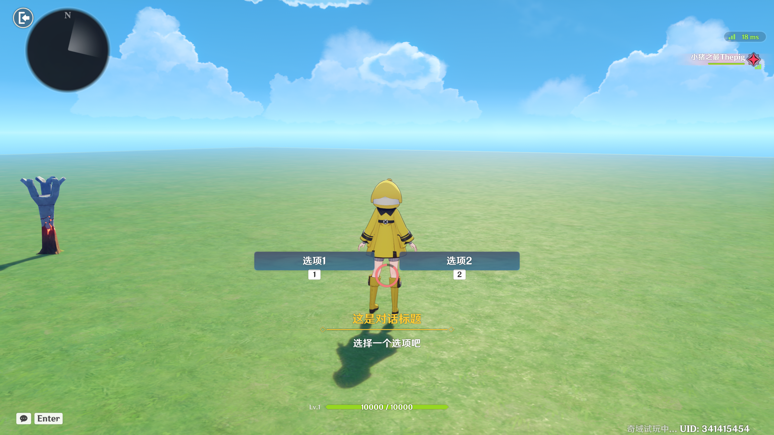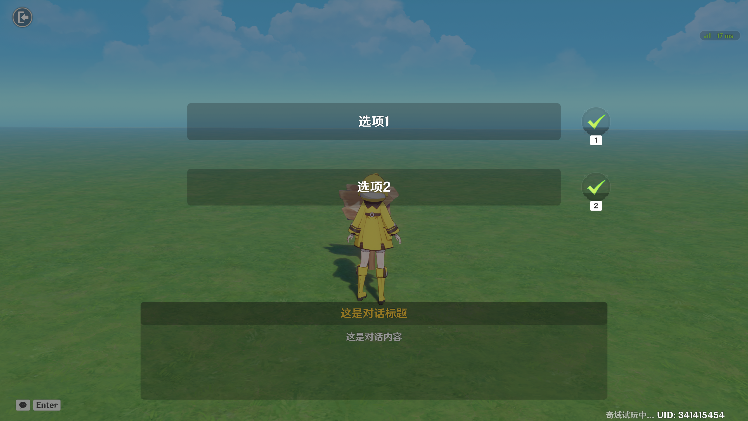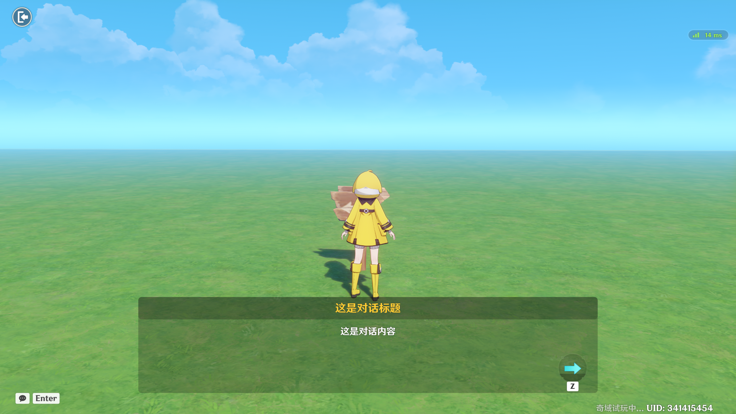 对话与玩家实体绑定。如果你正在制作一个多人奇域,请注意为每个玩家分别创建对话。