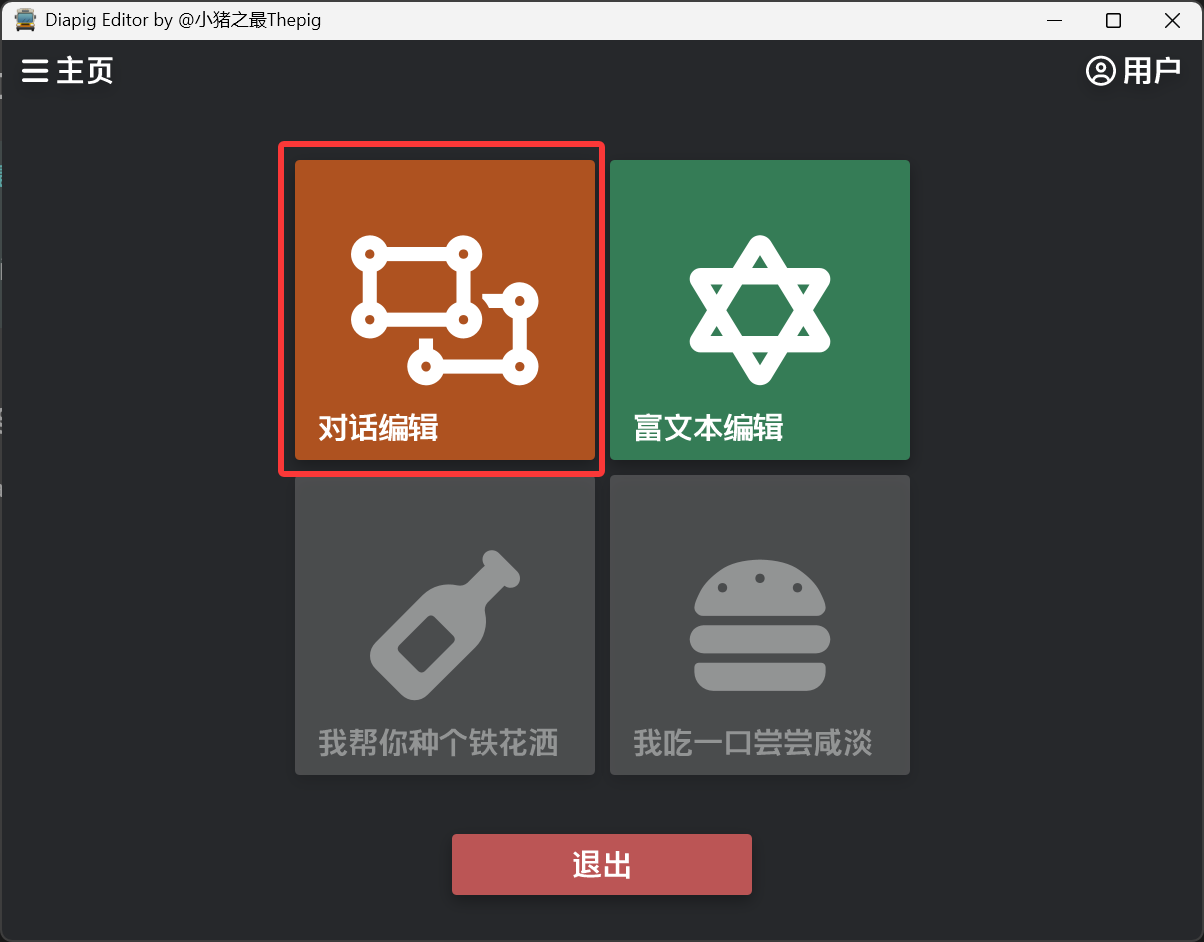 当前 Diapig Editor 只有对话编辑功能(富文本编辑还没写,别用)。