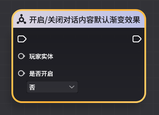 不建议在包含颜色标签的富文本中使用渐变效果,否则渐变效果会穿帮。如果需要制作包含富文本的对话内容,建议在创建对话/对应对话节点进入前使用以下千星沙箱节点关闭渐变效果: